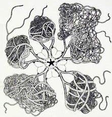 Ken Knowlton says that he's "been there, done that": he has been a farmhand, student, teacher, advisor, speaker, reader, mathematician, physicist, electron microscopist, computer scientist, chimes player, mountain climber, researcher, inventor, author, artist, critic, son, sibling, father, husband, grandfather, peace and civil rights activist, agnostic, retiree, liberal, cynic and realistic pessimist. Retired from scientific/technical agitation, he is trying to spend the final quarter of his life doing no harm: writing essays and memoirs, and using his own computer-assisted methods for planning his artwork, most of which are mosaic portraits.